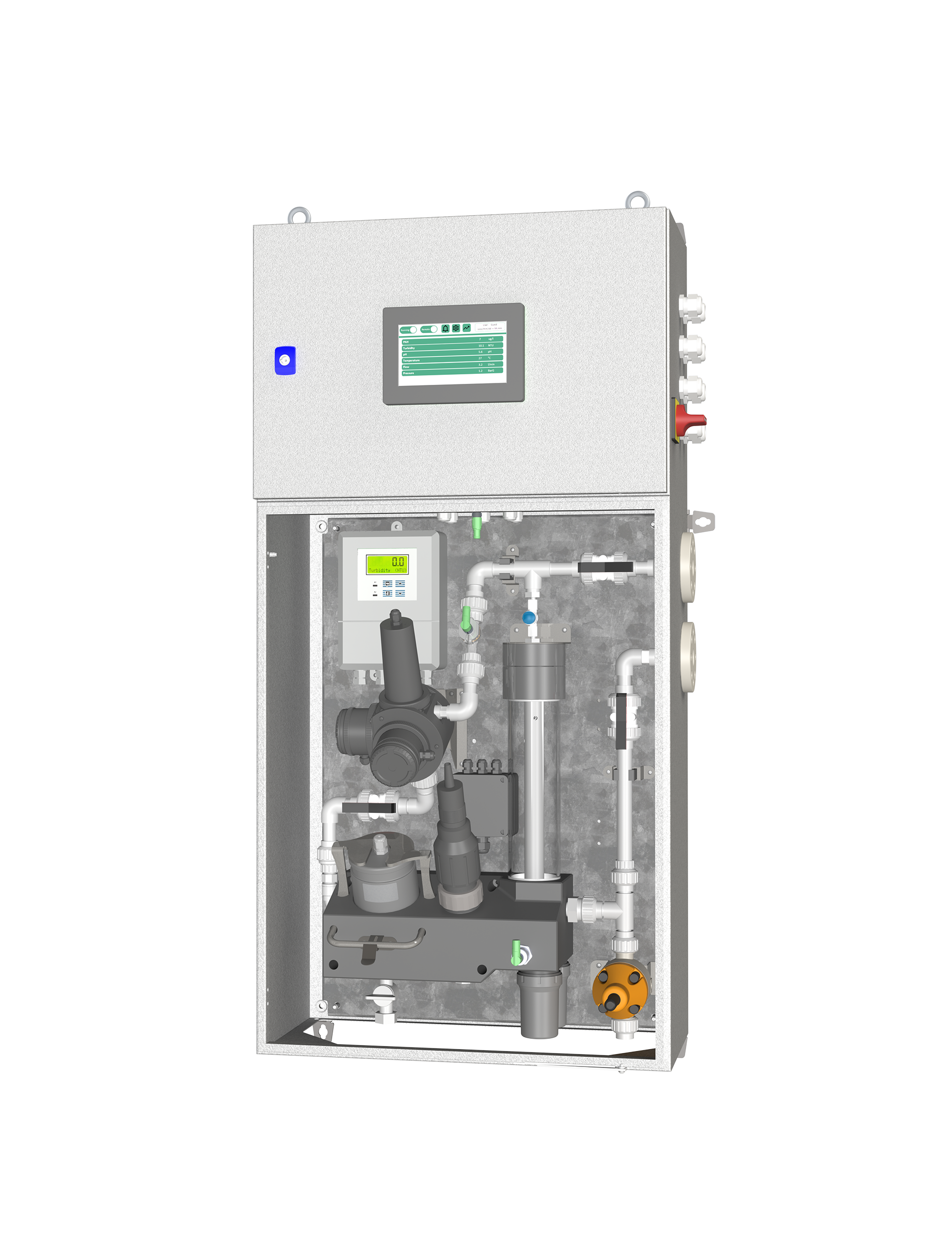 The G6200 Water Monitoring System is a modular system that continuously monitors scrubber water. With its robust and durable design, the system can be used in both open, closed, and hybrid systems and includes a de-bubbler, which avoids interference due to sample degassing. Compared to our G6100 version, the G6200 Water Monitoring System is a more simplistic system with no need of either a pump cabinet unit or a pressure reduction unit. The G6200 Water Monitoring System only requires water from scrubber pumps or a free-standing supply pump.